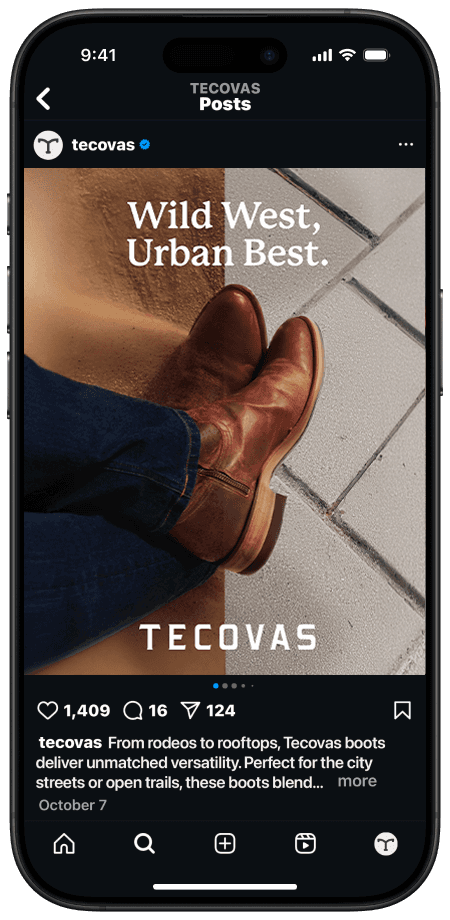 Versatility and Storytelling: Highlighting Tecovas boots as adaptable for diverse settings, from professional to casual, emphasizes their relevance and aspirational appeal. This approach showcases them as investment pieces with a meaningful story that enhances any wardrobe.